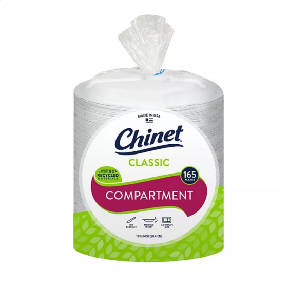Chinet Classic White 10-3/8″ Dinner 3-Compartment Plates (165 ct.)