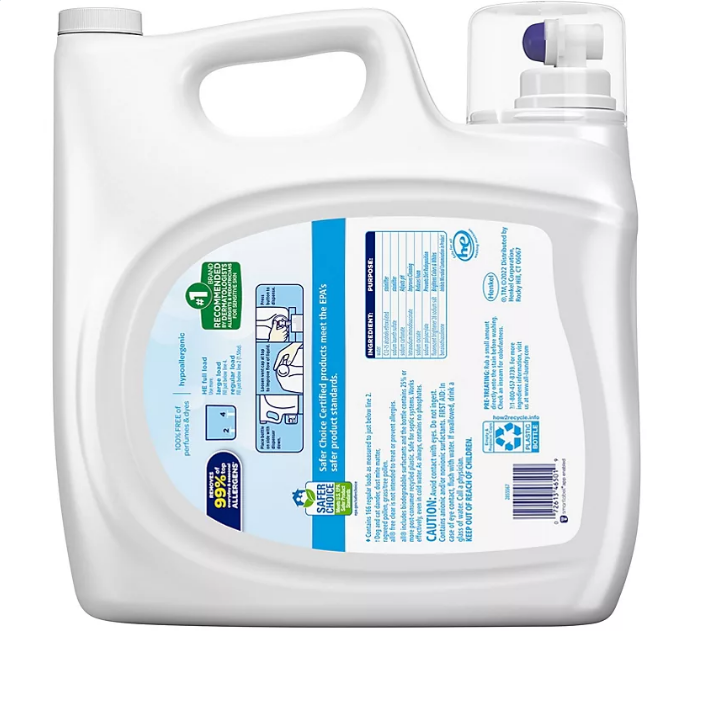 When it comes to laundry care for sensitive skin, all Liquid Laundry Detergent is the obvious choice. This hypoallergenic laundry detergent is the #1 recommended detergent brand by dermatologists, allergists and pediatricians for sensitive skin. It is 100% free of perfumes and dyes, making it hypoallergenic and gentle on sensitive skin. Use with all free and clear fabric softener and dryer sheets for clean and soft clothes with static cling reduction in the dryer. This unscented, fragrance free detergent is safe to use in any washing machine including high efficiency (HE) and at any water temperature. All free and clear is also available in convenient mighty pacs. This package includes one 250-fluid-ounce bottle of all free clear liquid laundry detergent, enough for 166 loads.