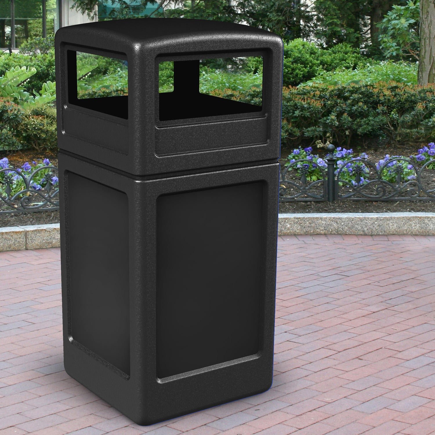 The Commercial Zone Square Waste Container with Dome Lid is designed to withstand the harshest environments. The covered dome lid with access on both sides is not only convenient but also protects garbage from exposure to outdoor elements and creatures. The outdoor trash can with lid is also environmentally friendly; it is manufactured from recycled polyethylene plastics. Using recycled plastics is an optimal way to cut down on the number of plastics that crowd landfills and even habitats in the environment.