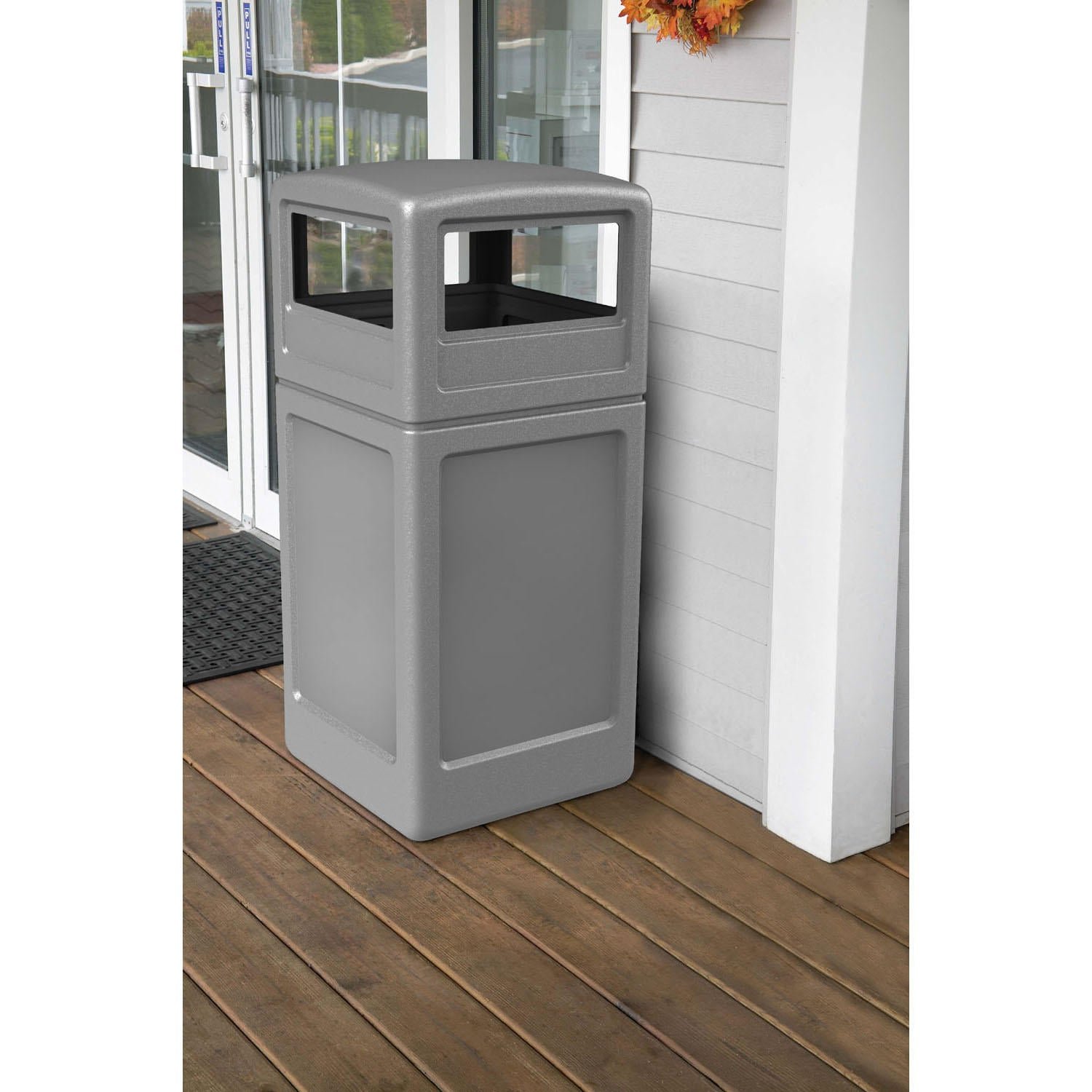The Commercial Zone Square Waste Container with Dome Lid offers a large 42-gallon capacity and uses standard 45-gallon sized trash bags. The patented Grab Bag? system provided by this outdoor trash can secures the trash bag in place to offer a neat appearance. No crinkled corners of the trash bags will stick out to create an unattractive, undesirable aesthetic. Also, the lid on this outdoor trash can fits snugly but is able to be easily lifted off in order to conveniently remove the trash.