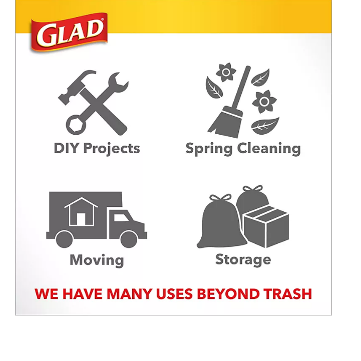 - 13-GALLON GREY TALL KITCHEN TRASH BAGS: Glad with Clorox garbage bags work as hard as you do to maintain a clean & healthy home with a versatile design for both kitchen trash and tackling household chores