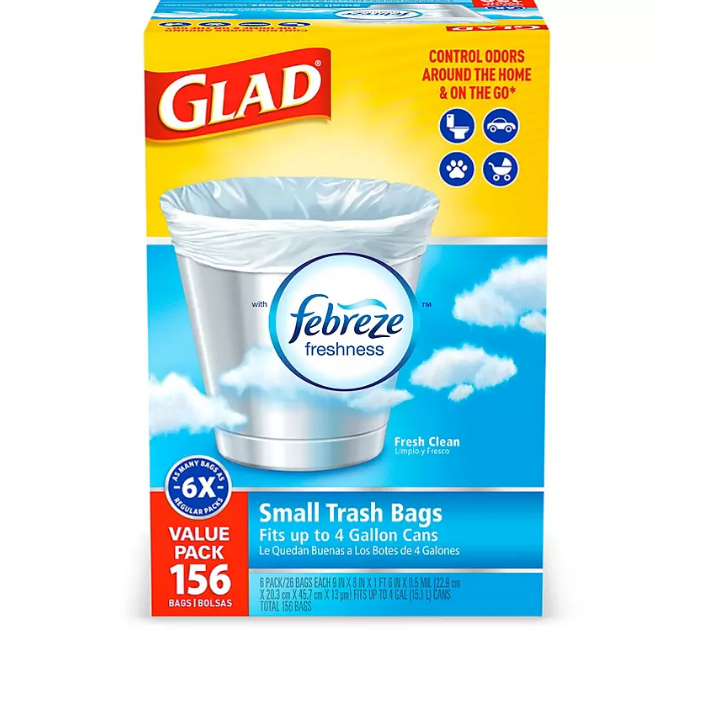 - Handle daily household demands with Glad’s small-sized four-gallon garbage bag in Fresh Scent