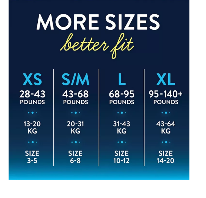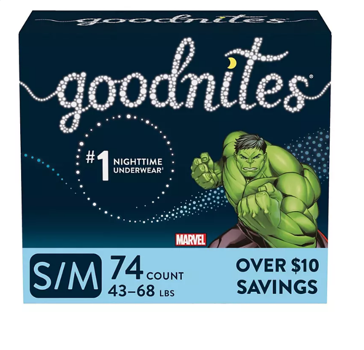 ?Plus, they come in awesome Marvel character designs that your child will love wearing to bed. Goodnites Boys’ Bedwetting Underwear come in more sizes for a comfortable, tailored fit up to 140+ lbs. Goodnites are available in Size XS (28-43 lbs.), S/M (43-68 lbs.), L (68-95 lbs.), and XL (95-140+ lbs.). Goodnites are FSA/HSA-eligible in the U.S. (*Youth Pant category share data) (**See Goodnites website for details)