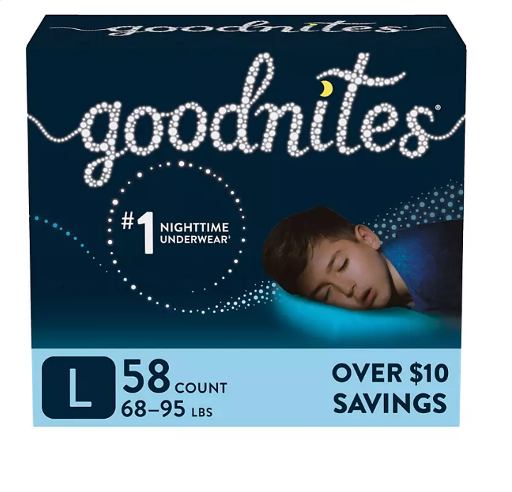 Deliver a dry and worry-free night for your child with the #1 Nighttime Underwear* brand that has helped more than 10 million kids manage overnight bedwetting. Goodnites Nighttime Bedwetting Underwear provide our best fit and protection guaranteed** for kids age 3 and up. These disposable bedwetting pants offer zoned protection where kids need it most, as they come equipped with 5 Layer Protection to absorb and lock away wetness and reinforced Double Leg Barriers to help eliminate leaks. As our most comfortable nighttime protection underwear, Goodnites also feature a super stretchy waistband for a soft, underwear-like fit that accommodates all body shapes. Unlike potty training pants, Goodnites bedwetting underwear discreetly absorb odor and offer 40% more protection vs. the leading potty training pants to allow your child to worry less about the mess.