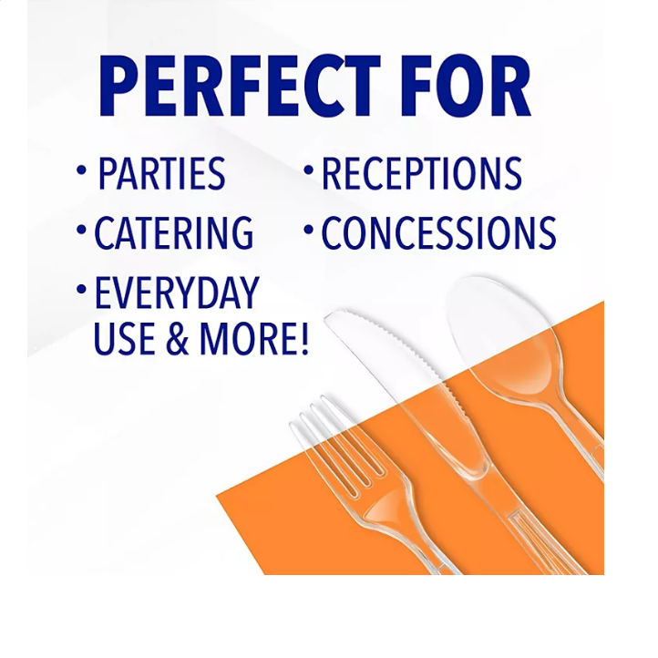 • Crystal clear plastic cutlery set to complement any décor
