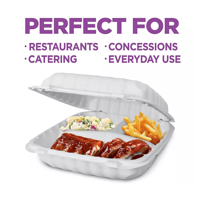 Hefty Earthchoice 3-Compartment Hinged Lid Containers, 9″ (50 ct.)