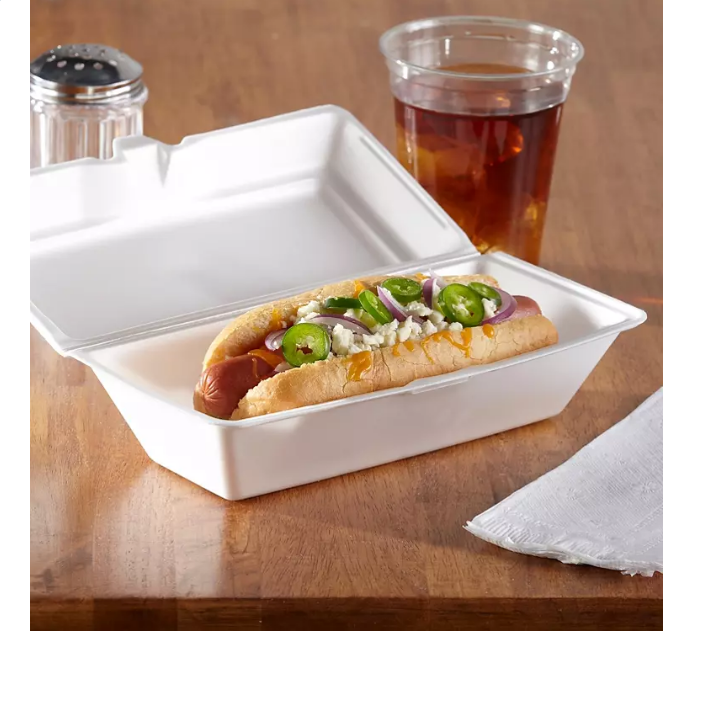 Hefty? Food Service Containers (125 ct.) provide a durable foam construction and feature a soak-proof layer that prevents leaks from forming. These rectangular foam containers are perfect for hot dogs, sandwiches, sides and more. Great for restaurants and delis, concessions, church events and vendors. This pack contains 125 multipurpose foam containers, measuring 9 ?” x 5″ x 3 ?”.
