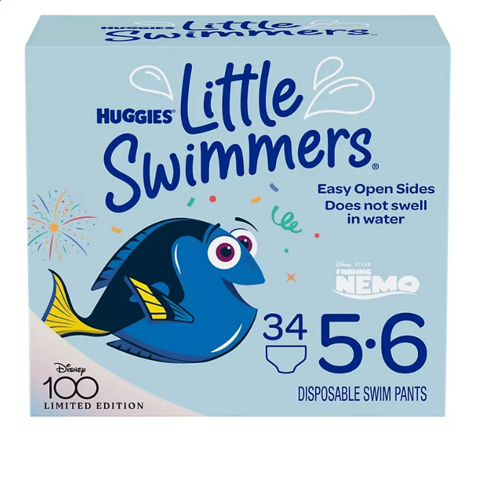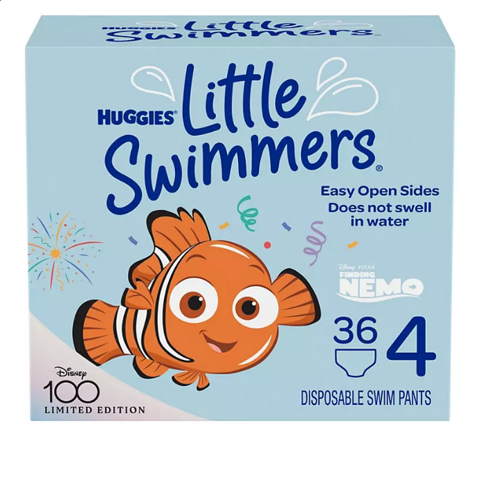 Plus, the soft, stretchy waistband makes these swimming diapers comfortable for your baby. Huggies Little Swimmers water diapers are made with no harsh ingredients and are free of fragrances, lotions, parabens, elemental chlorine bleaching and natural rubber latex. Coming in two adorable Disney・Pixar Finding Nemo designs, these baby diapers are perfect for the pool, beach, splash park and more.