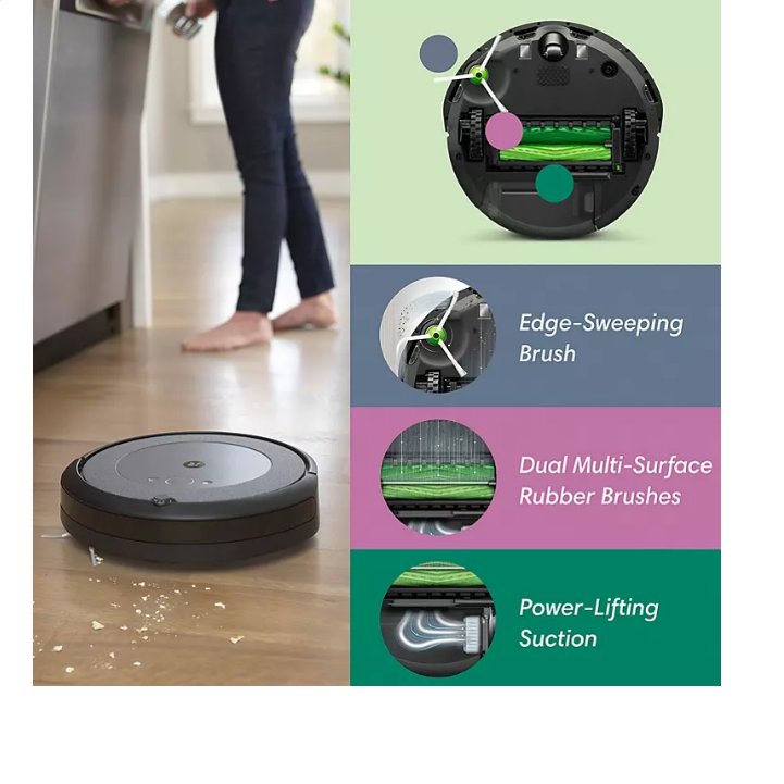 - Perfect for Homes With Pets – Instead of using a single bristle brush, Roomba i3+ EVO uses Dual Multi-Surface Rubber Brushes that flex to adjust to different floor types and avoid getting tangled with pet hair