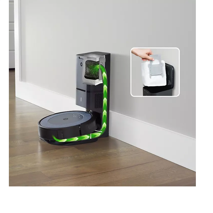 The Roomba i3+ EVO robot vacuum helps take vacuuming off your mind— cleaning in neat rows, emptying itself, and learning your habits to offer up personalized schedules. After each cleaning, it empties itself into a dirt disposal bag that takes up to 60 days to fill, so that you can forget about vacuuming for months.
