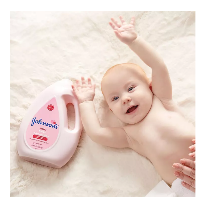 • Johnson’s Baby Pink Moisturizing Lotion with coconut oil to hydrate baby’s delicate skin.