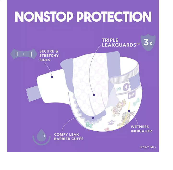 - Luvs Triple Leakguards absorb quickly to help stop leaks before they happen