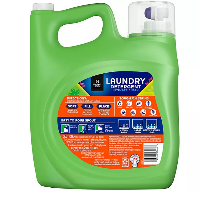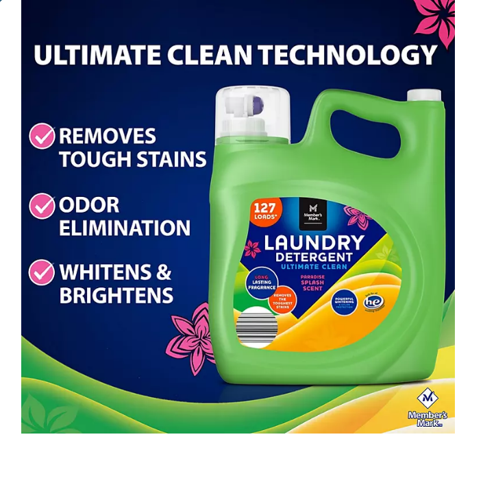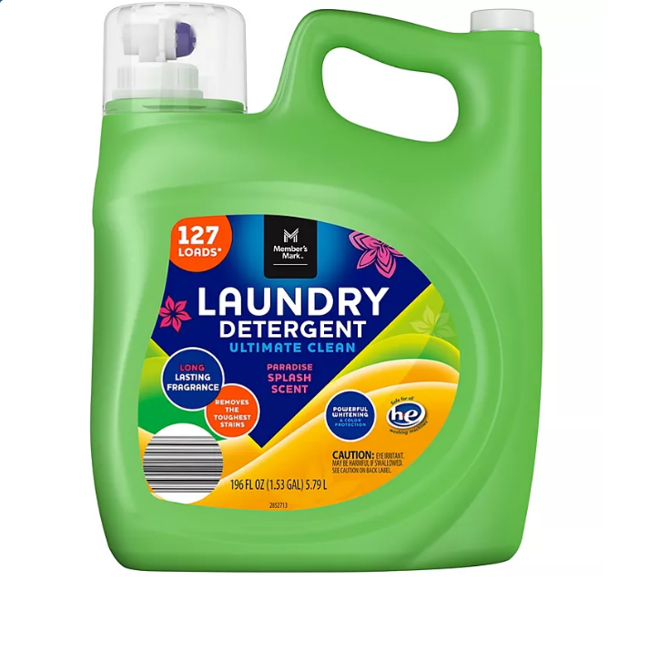 Member’s Mark Ultimate Clean Liquid Laundry Detergent 196 fluid ounce bottle is great for stocking your home’s laundry room or commercial environments with high-quality liquid detergent, enough for 127 loads. Enjoy the long lasting freshness of the Paradise Splash scent with every load!