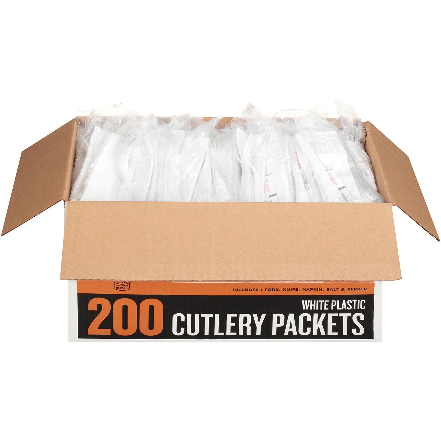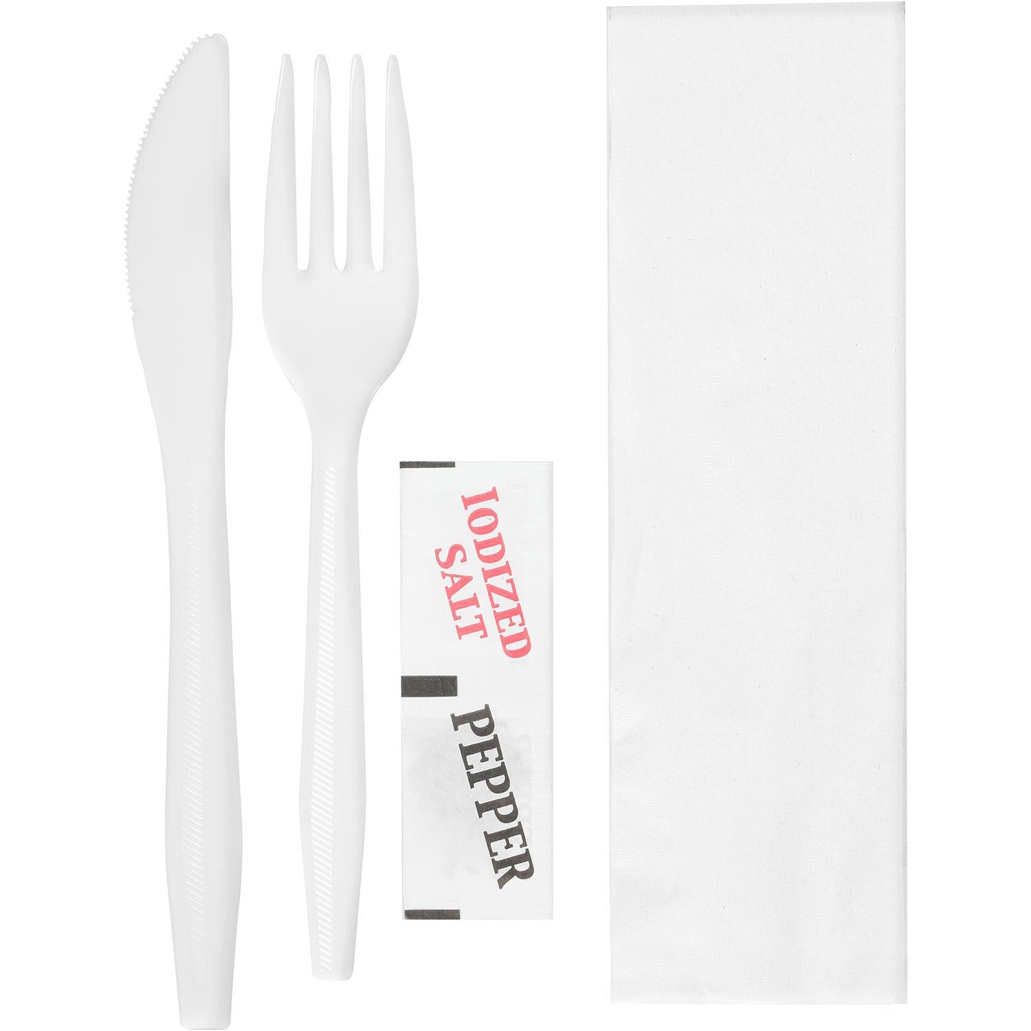 - Includes fork, knife, napkin, salt and pepper packets