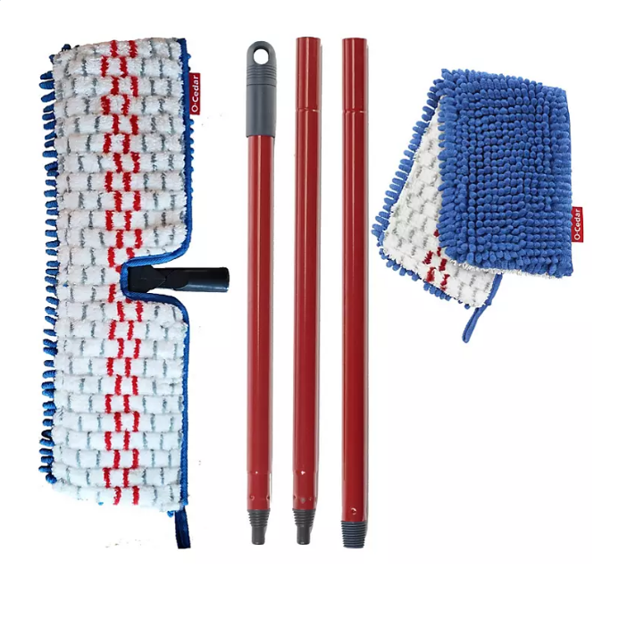 The O-Cedar Hardwood Floor ‘N More Microfiber Flip Mop comes with an easy-to-assemble, sturdy handle, mop head and two double-sided microfiber and chenille mop pads. The microfiber side can be used wet or dry to clean spills and stuck-on messes. When used with just water, the microfiber side removes over 99% of bacteria with just water for easy, chemical-free cleaning. The ultra-dense chenille side features “fingers” that grab and hold dirt, dust, particles and hair making this mop excellent for pet owners. It’s two times the cleaning power in one mop!?
