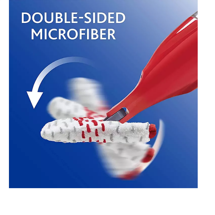 - The large, dual-sided microfiber mop head allows you to clean twice the floor coverage without having to stop and change the mop pad