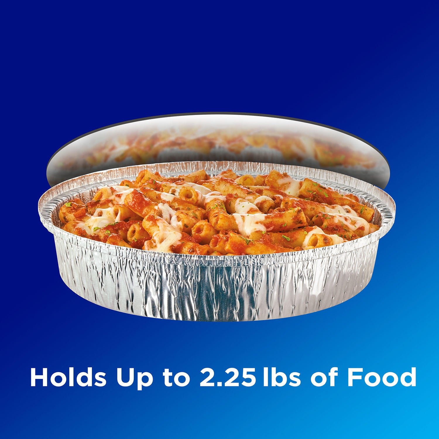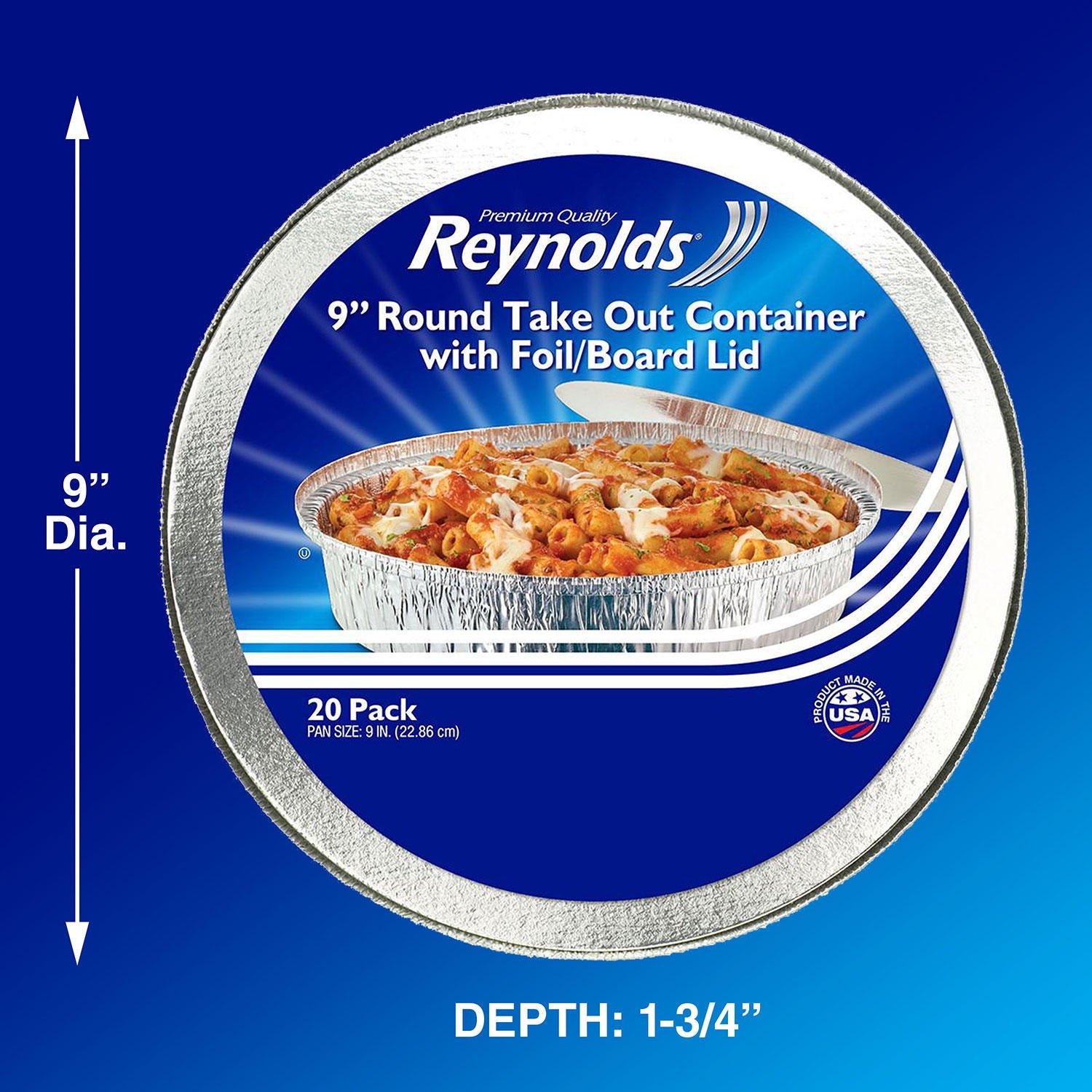 - This package contains 20 foil take out containers and 20 board lids, measuring 9 inches in diameter x 1.75 inches deep and holding 2.25 lbs of food