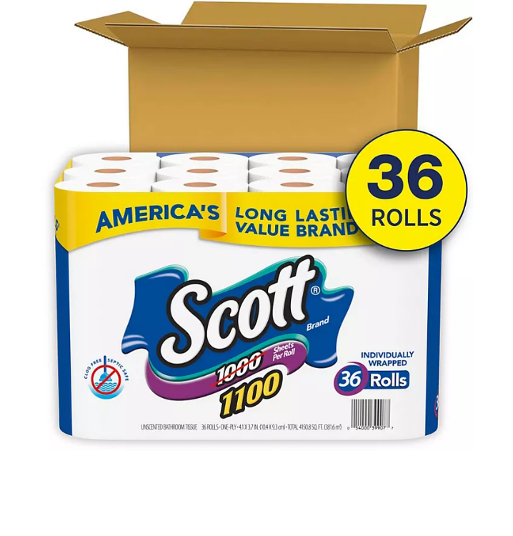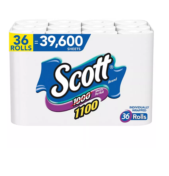 - 36 regular rolls of Scott 1100 Toilet Paper―packaging may vary