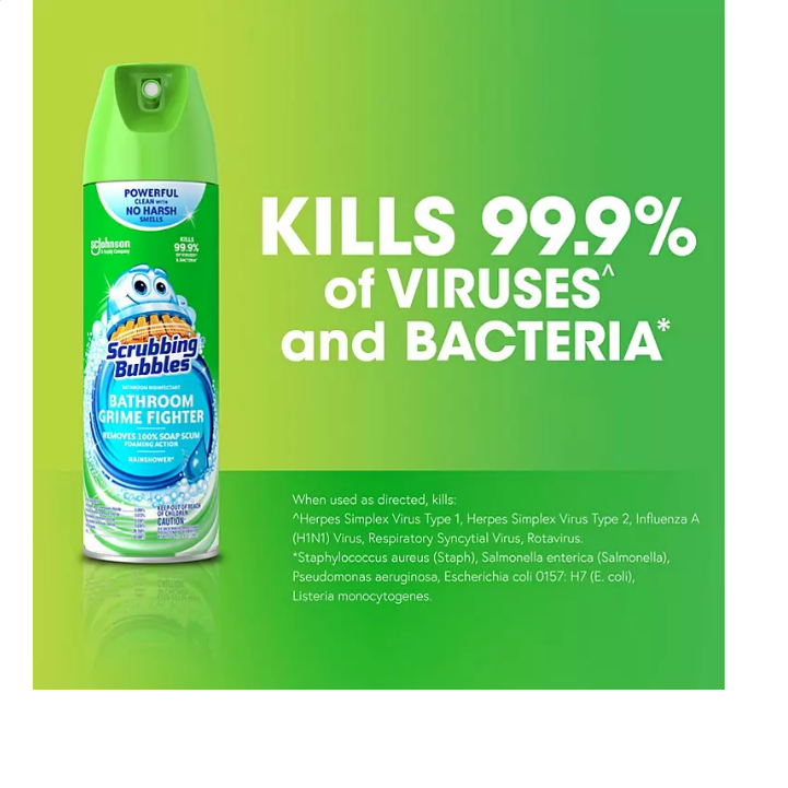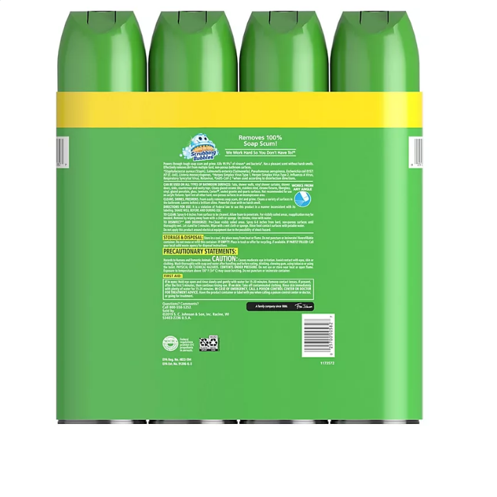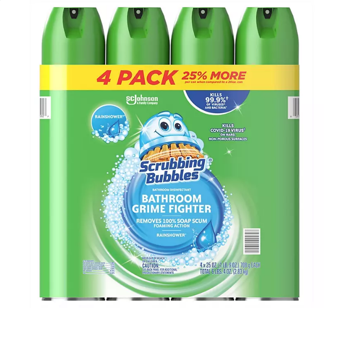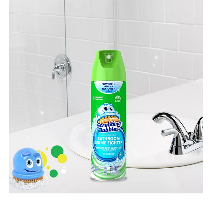 The Scrubbing Bubbles? Foaming Bathroom Cleaner (25 oz., 4 pk.) does more than just clean the bathroom. Scrubbing Bubbles cleans the shower, tub and sink, removes 100% of the soap scum and smells amazing.