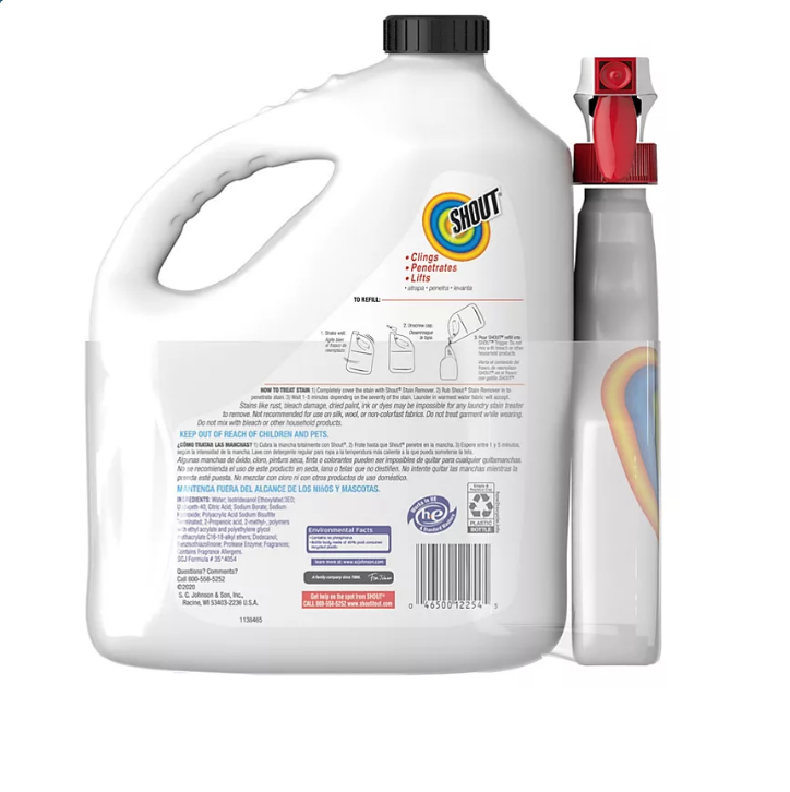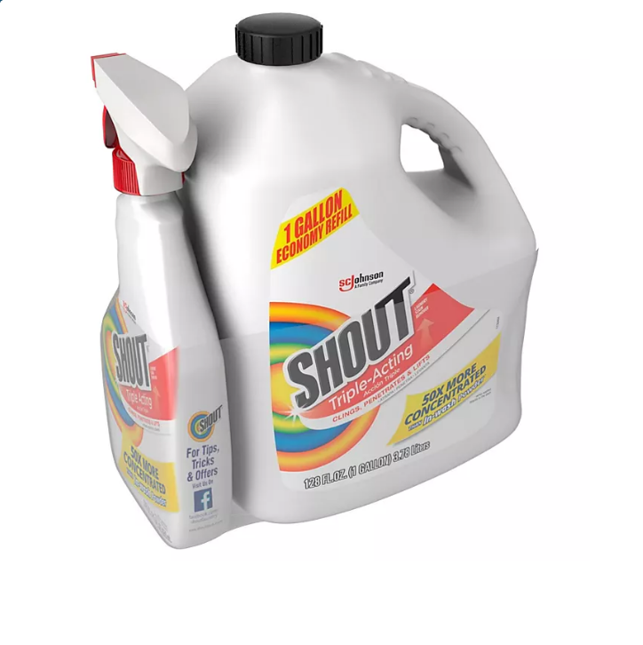 Shout Triple-Acting Laundry Stain Remover (128 fl. oz. refill – 22 fl. oz. trigger)