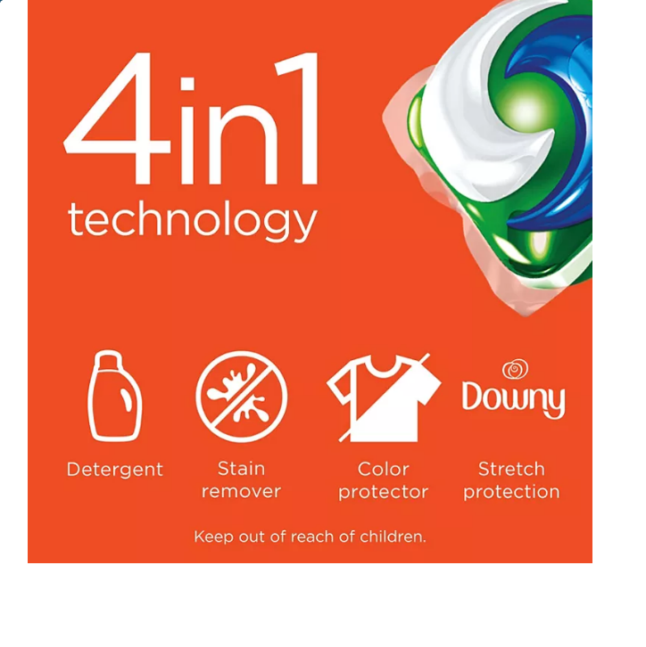 - 4-in-1 including detergent, stain remover, brightener?and Downy Fabric Protect technology