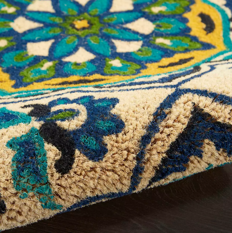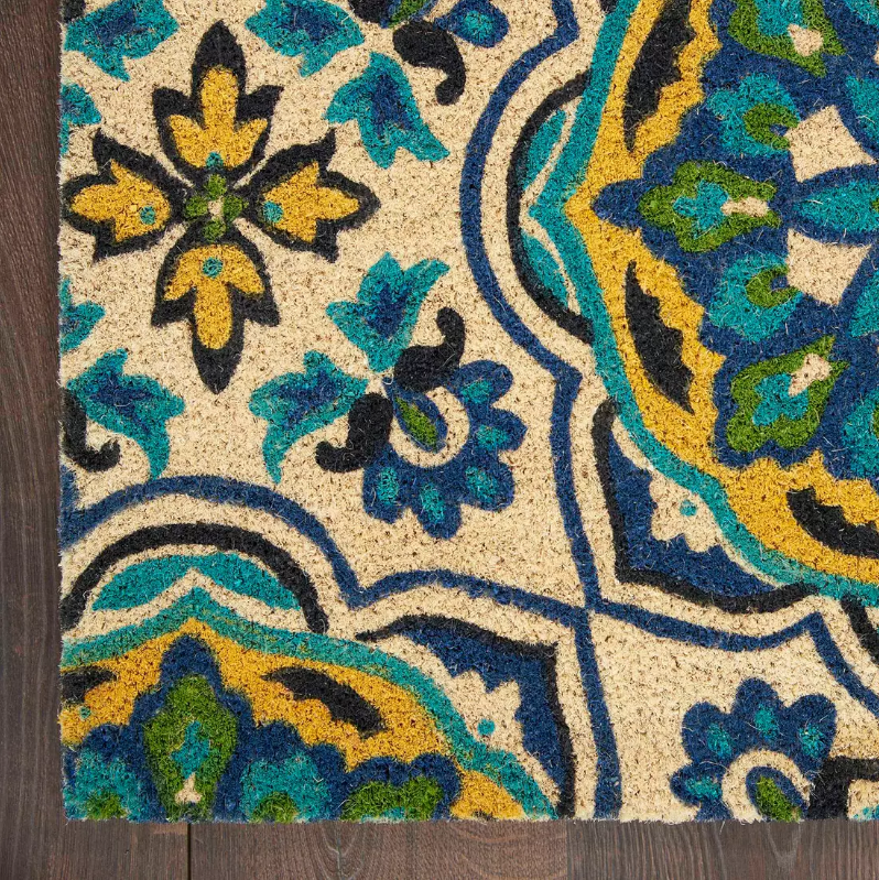 Bring a touch of the tropics to your front door or entryway with this coastal doormat from the Waverly Greetings collection. This fun and funky design feature an all-over repeating pineapple graphic in bright purple, orange, green, deep navy hues that will leave you and your loved ones hesitating at the door to take a closer look. Machine-made from coir, an eco-friendly natural fiber that traps dirt from being trekked into your home.